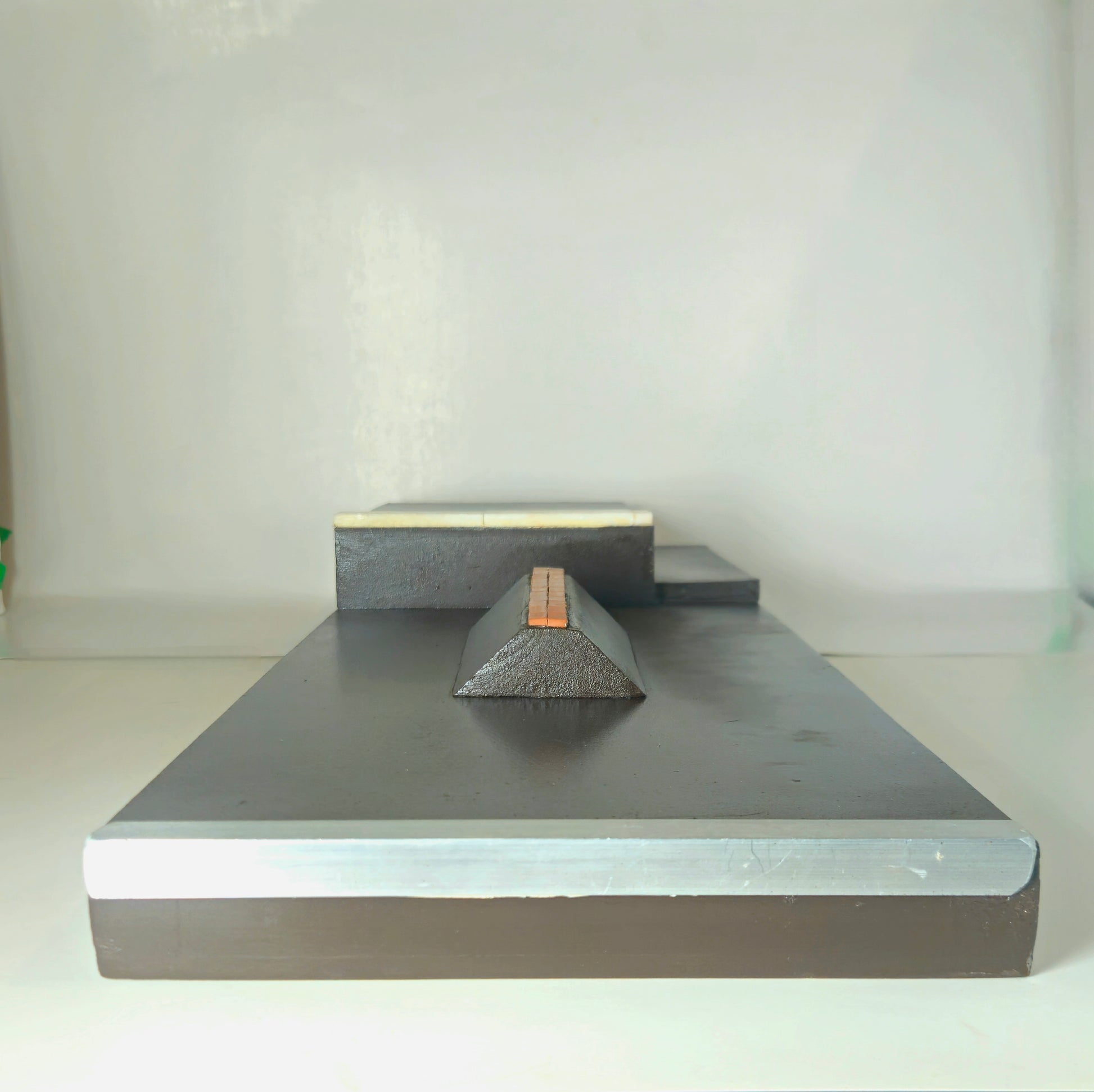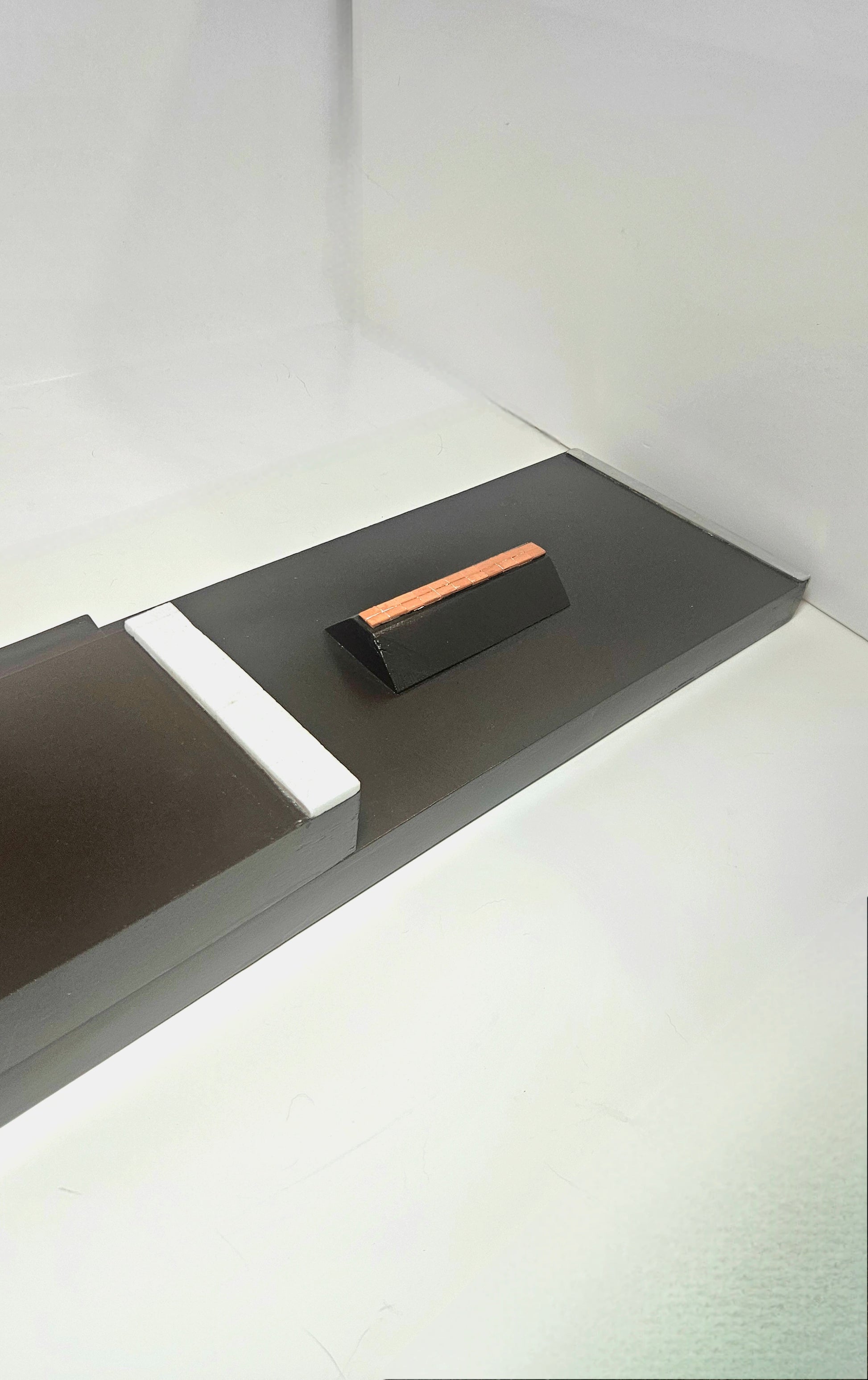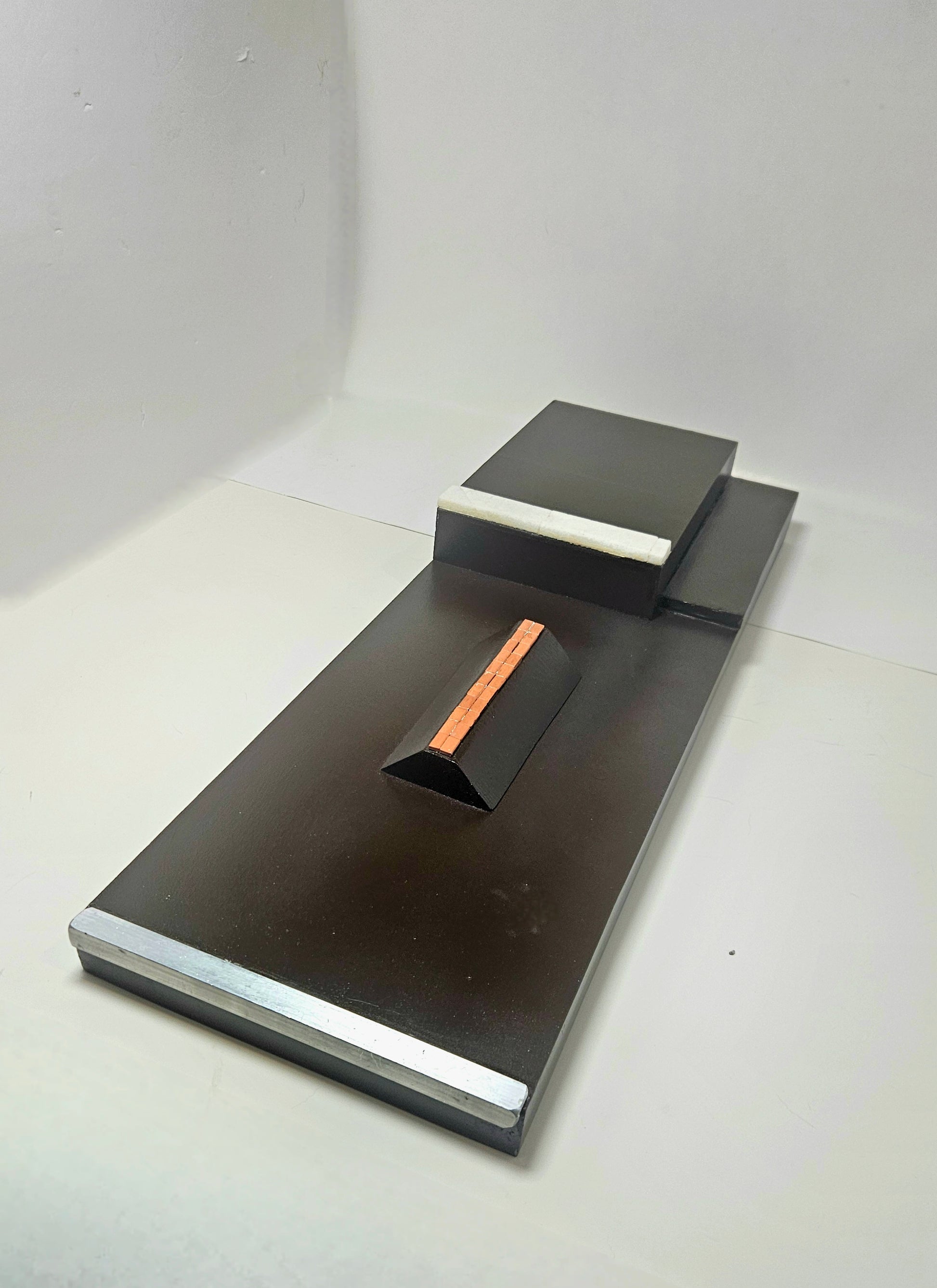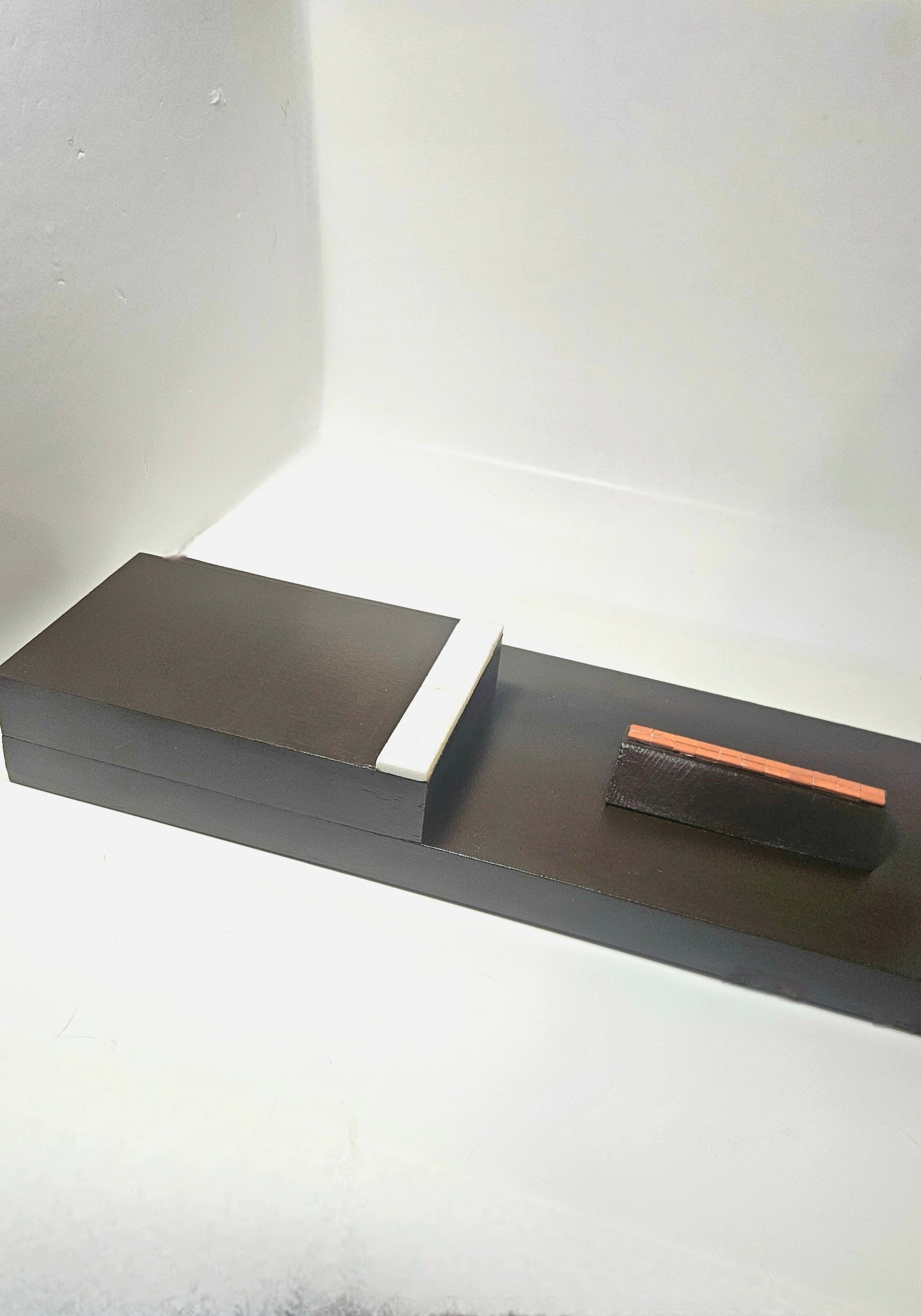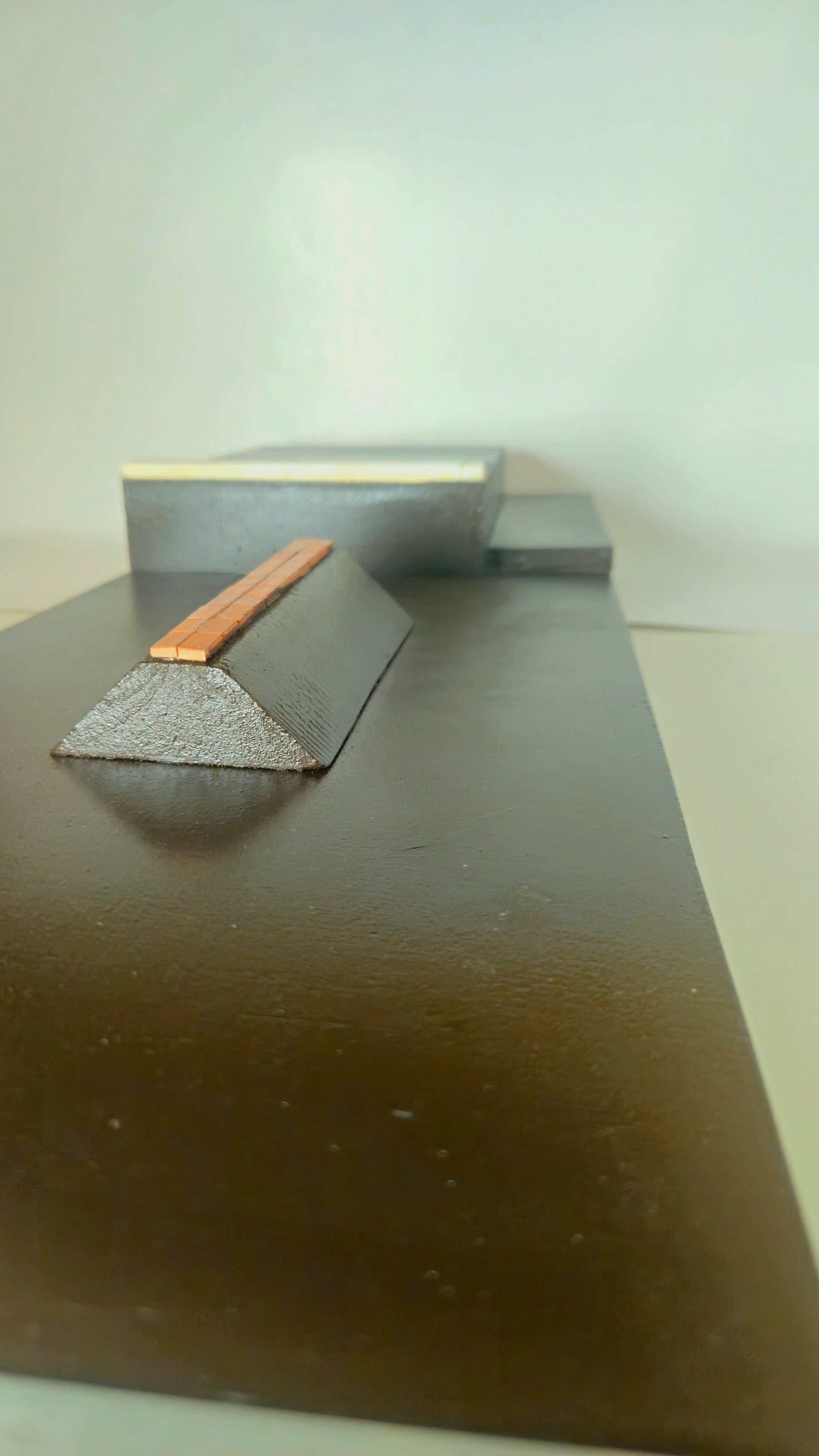 Handcrafted 2-level fingerboard obstacle with real ceramic, brick and aluminum coping.